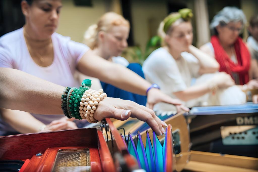 Kirtan in this lineage is not performance — it is prayer. It is meditation through melody.Â